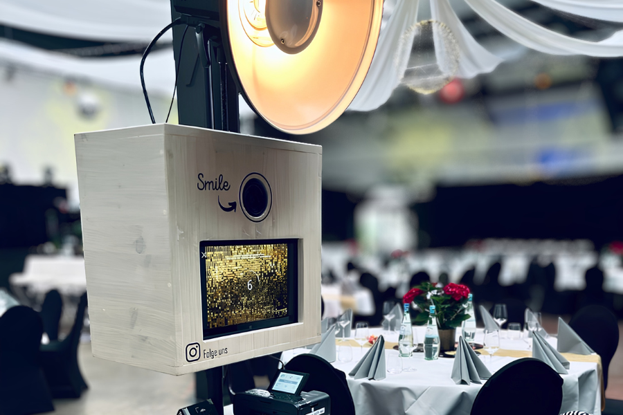 Für große Momente: Moderne Eventausstattung und Premium Fotoboxen inklusive Auf/-Abbau für hochwertige Erinnerungsbilder.