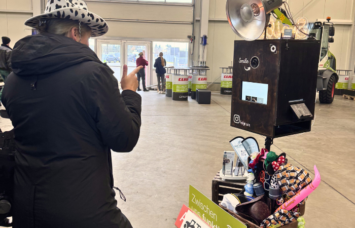 Blitzleistung angepasst, Kameraeinstellungen optimiert, Tests gemacht und die Szene so ausgerichtet, dass der Trecker kraftvoll, echt und live wirkt, ohne die Gäste aus dem Fokus zu drängen.