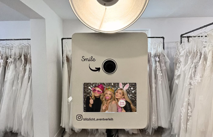 Die Premium Fotobox Classic hält echte Momente fest, druckt sie sofort aus, bietet Live-Ansicht, Filter, QR-Code und inkludiert exklusive Extras für Erinnerungen, die dein Event einzigartig machen.